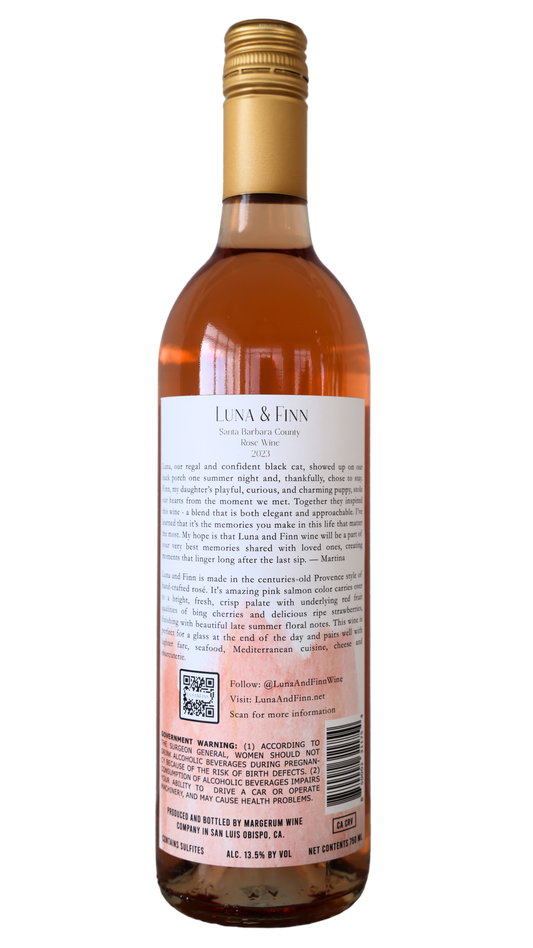 Luna & Finn is made in the centruries-old Provence style of hand-crafted rose. It's amazing pink salmon color carries over to a bright, fresh, crisp palate with underlying red fruit qualities ...